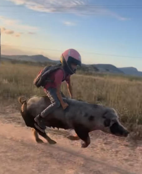 罗查的妈妈在社交媒体上发帖称:“学校下午1点开始上课,而他只需要12点59分从家出发就能赶到学校。”因为“福盖特”跑得太快,他从猪身上下来时容易摔倒,为了安全,罗查会在骑猪的时候戴上摩托车头盔或安全帽,有时还会戴上护目镜。
